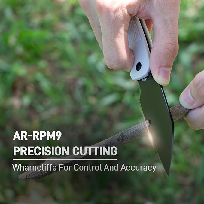 - Precision Cutting: The CJRB Pyrite-Light pocket knife features a 3.34'' AR-RPM9 Wharncliffe blade with HRC 59-61 hardness, ensuring durability and sharpness for various cutting tasks