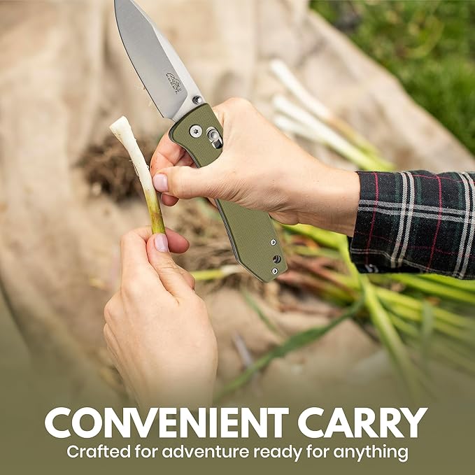 - Ergonomic Handle: Green G10 handle provides a secure and comfortable grip, ensuring precision and control.