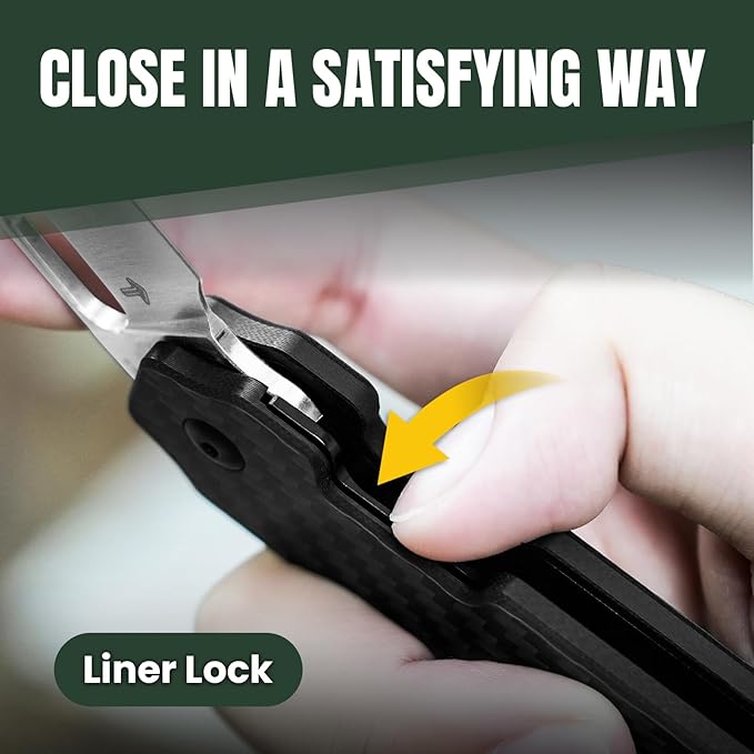 - Strong G10 Carbon Fiber Handle Knife: The black G-10 carbon fiber handle of Varatas folding knife feels great in the handle. While remaining lightweight and easy to maneuver.