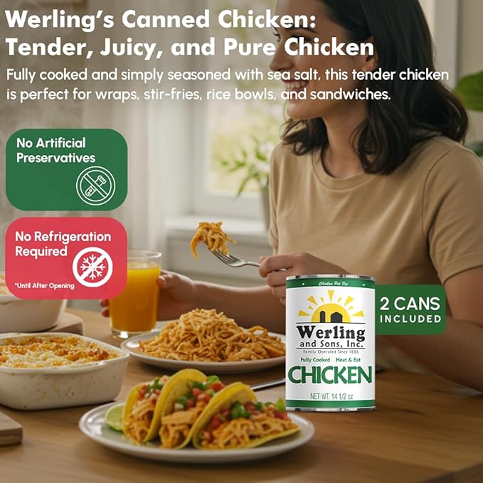 - MADE IN THE USA:- Trusted Family Brand: Werling & Sons is a family-owned company with decades of experience, proudly producing premium canned meats in the USA using time-tested recipes and quality ingredients.