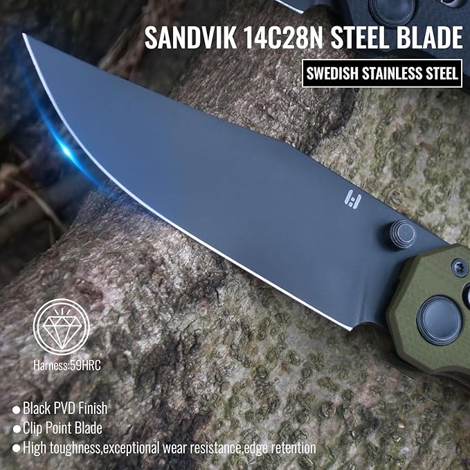 - ERGONOMIC AND COMFORTABLE GRIP:We use a G10 handle with a certain texture or surface treatment, which is not easy to slip during use, effectively improving the safety and controllability of using edc knives. In addition, this folding knife also has a thoughtful deep carrying pocket clip and lanyard hole design