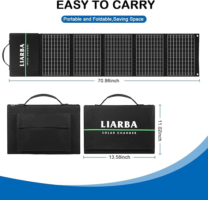 - 【PORTABLE CAMPING SOLAR PANEL】Liarba Solar Charger Is A Great Option If We’re Taking An Extended Camping Trip Or If We’re Traveling Somewhere With An Unreliable Power Grid. With Compact Size (13.1×9.6in Folded) And Lightweight(4Lb) Design, It Is Portable And Light Enough To Fit Into Any Camping Backpack Or Hiking Daypack. It Is Also A Must Have For Stashing In An Emergency Kit.
