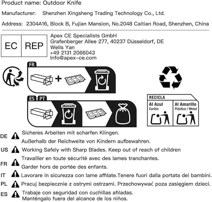 - Recommended Uses For Product : Camping, Fishing, Hiking, Hunting, Indoor, Outdoor, Peeling, Skinning