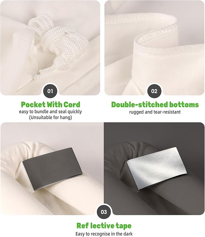 - Prime Size for Hunting: Come with four 48*12 inch quarter bags and one 28*12 inch part bag, fit to most the medium and large Game, and each bag is equipped with reflective straps that allow it to be easily located in the dark.