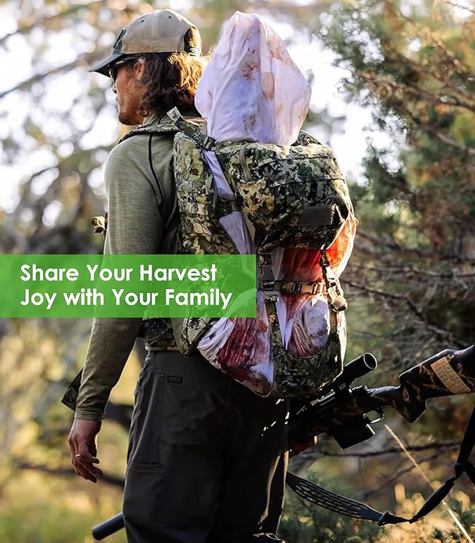 - Reliable Hunting Partner:Designed to keep your meat fresh after field dressing, Elk game bags shield your meat from dirt, debris, flies, and other contaminants, ensuring it remains clean and safe for consumption.