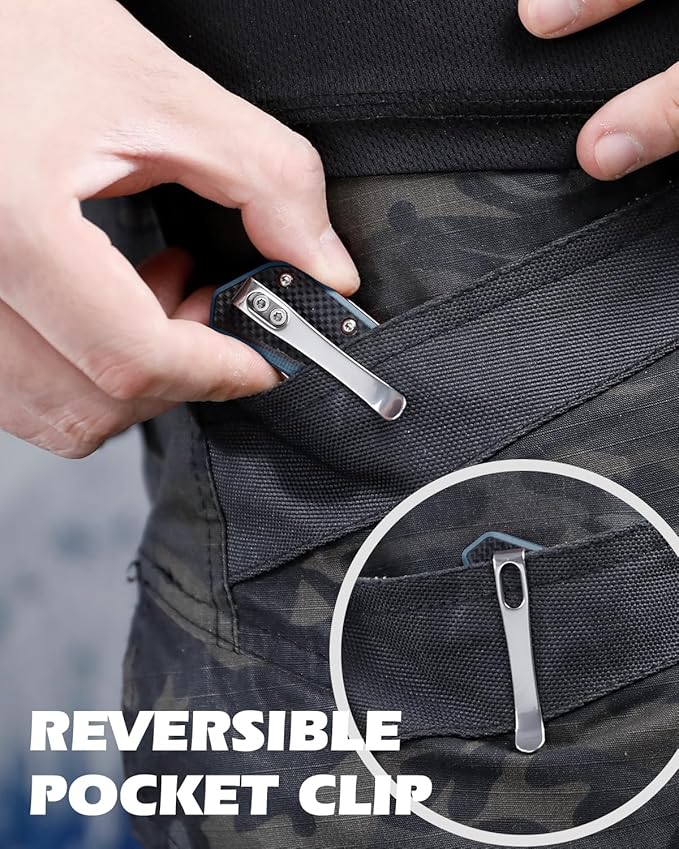 - POCKET KNIFE WITH CLIP: Weighing less than 3 ounces, the has a deep carry reversible pocket clip, allowing for easy and secure carry. Whether you're camping, hiking, or simply need a reliable tool on hand, dispatch edc folding knife has you covered
