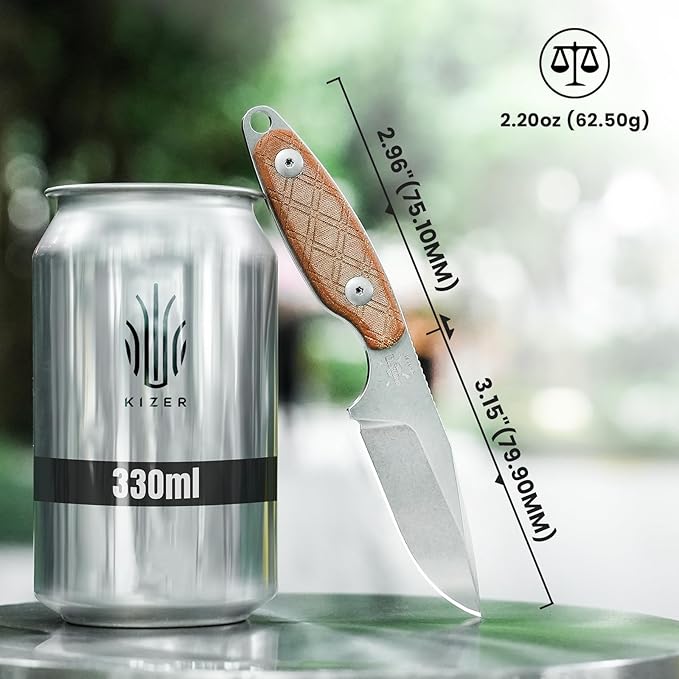 - Razor Sharp Knife Blade: Crafted from 154CM steel, the blade of Kizer Muskrat fixed blade knife is well-balanced, offering sharpness, hardness, edge retention, toughness, and corrosion resistance