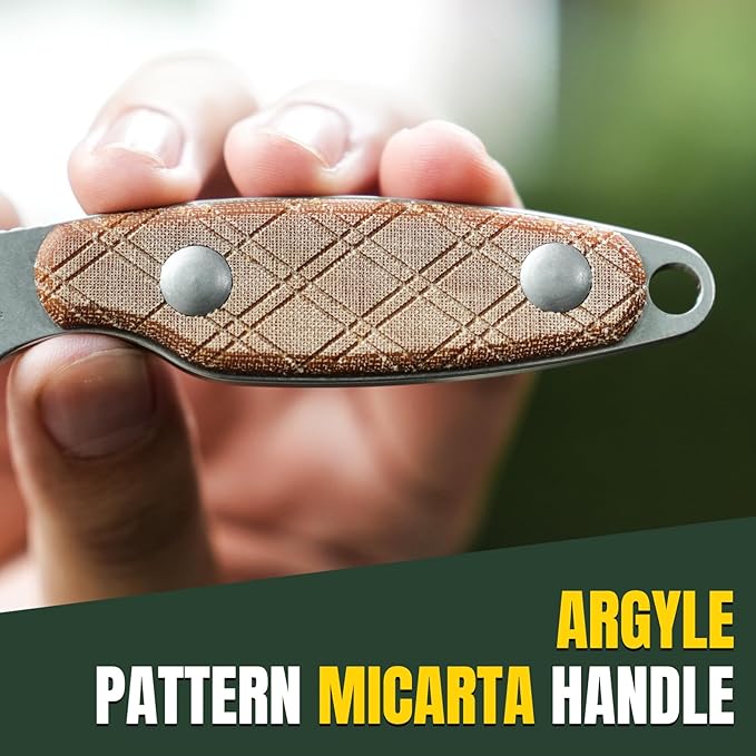 - Argyle Pattern Micarta Handle: Fixed blade knife with sheath - The grippy micarta handle of edc fixed blade knife provides a comfortable and secure grip