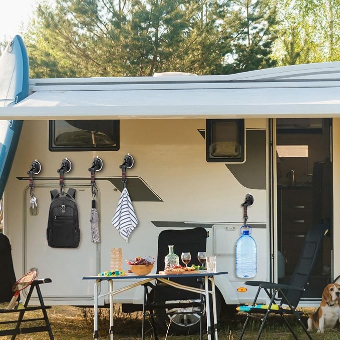 Maitys Heavy Duty Suction Cups with Hooks Tie Down Strong Suction Cup Anchor Car Camping Accessories Vacuum Outdoor Suction Cup with Hooks for Car Boat Awning Camping Tent Trap