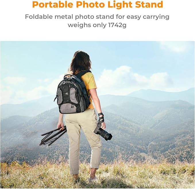 - 【Ultra-Portable & Travel-Friendly Design】Maximize your shooting flexibility with our collapsible light stand! Its innovative foldable design allows quick breakdown into a compact size, perfect for photographers on the move — store it in tight spaces, toss it in your gear backpack, or take it anywhere without hassle. Shoot anywhere, anytime!