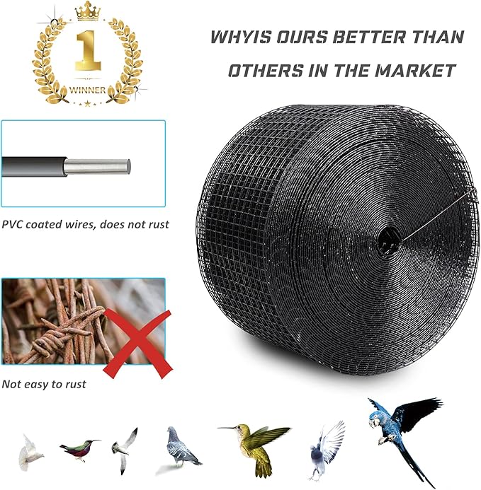 Solar Panel Bird Guard Mesh - 6In x102 Ft 70 Aluminum Fasteners Solar Critter Guard Solar Panel Pigeon Guard Bird proofing Bird mesh PVC Coated Galvanized net Pigeon Deterrent MEFBANT