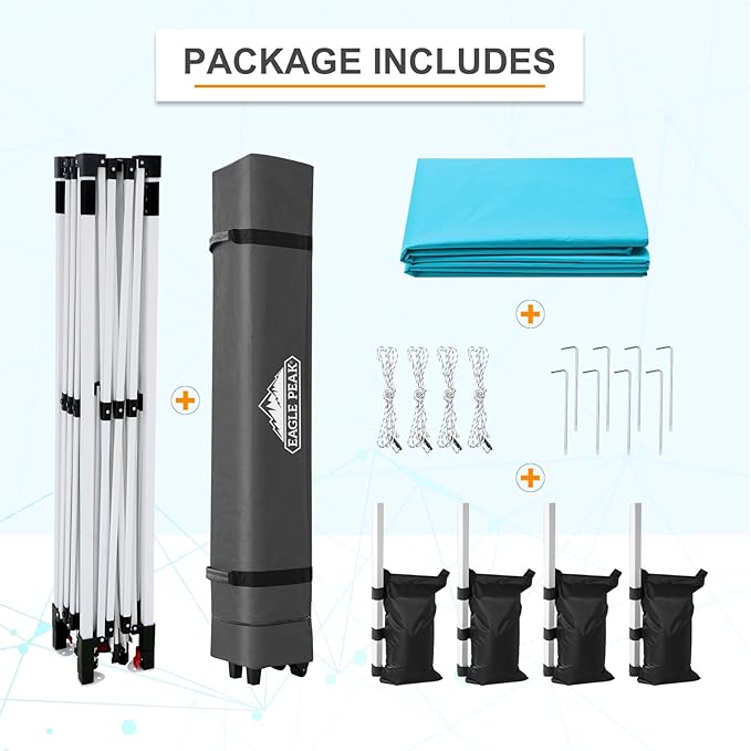 - EAGLE PEAK PROMISE: EAGLE PEAK offers 1-year limited after sale protection from the date of purchase. Unlike many other canopy sellers, EAGLE PEAK offers this for our frames, tops and bags! Please contact our professional service team with any questions