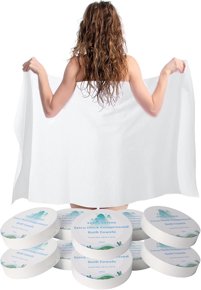 - 【Versatile & Multi-Purpose】Whether you're traveling, hiking, or enjoying outdoor activities, the extra Large compressed disposable bath towels provide quick-drying convenience. They're also ideal for hotels, homes, guest, and emergency situations.