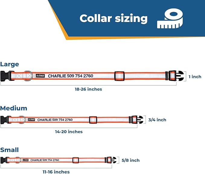 - 3 ADJUSTABLE COLLAR SIZES: Small (5/8 inch wide by 11-16 inches adjustable length), Medium (3/4 inch wide by 14-20 inches adjustable length), Large (1 inch wide by 18-26 inches adjustable length).