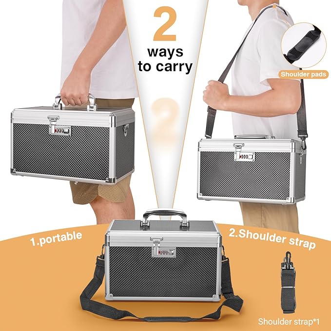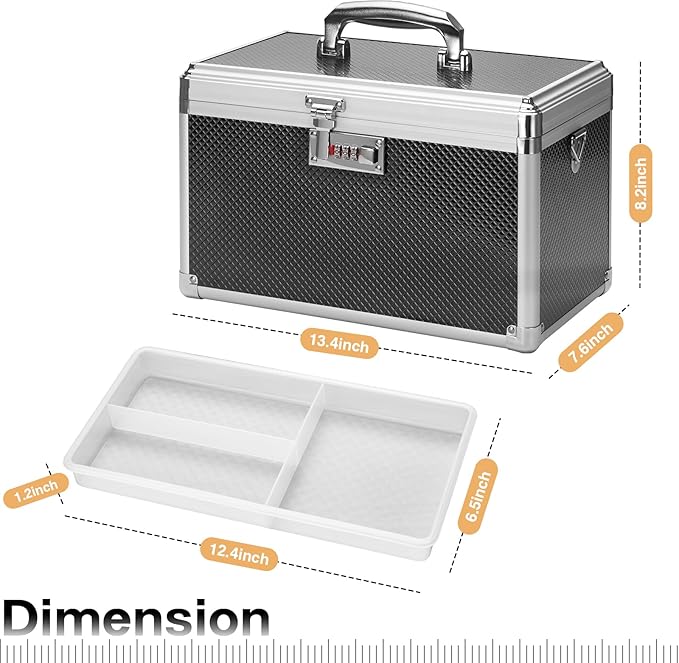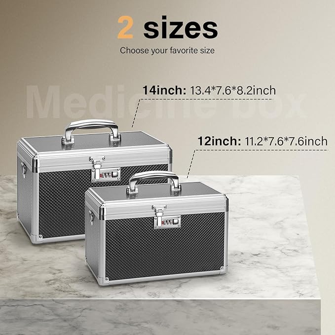 - PERFECT SIZE: Measuring 13.4 x 7.6 x 8.2", Black, unique combination lock + shoulder strap. our locked medicine box can store up to 16-18 standard-sized pill bottles or any other small first aid