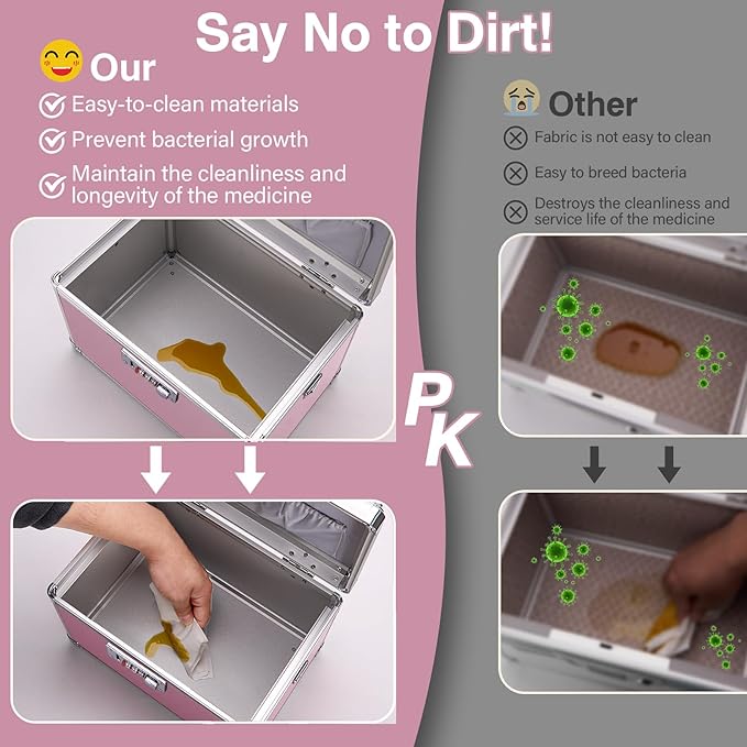 - STURDY AND DURABLE: Made of high-quality aluminum alloy + MDF + plastic, detachable plastic tray, our medical organizers is constructed with 4 steel corners, aluminum reinforcement, and an extra strong combination lock to ensure your materials are safe
