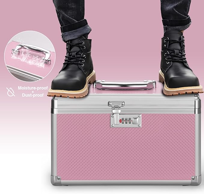 Medicine Lock Box With Combination Lock - 13.4 x 7.6 x 8.2 Inches - First Aid Safe Medication Storage Box, Medications and Personal Items, Safe Boxes for Home and Outdoor - Pink
