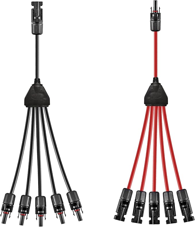 - 【Y solar branch connector】: 1 male to 5 female (M/FFFFF) and 1 female to 5 male (F/MMMMM). Allows you to quickly connect 5 solar panel branches in parallel.
