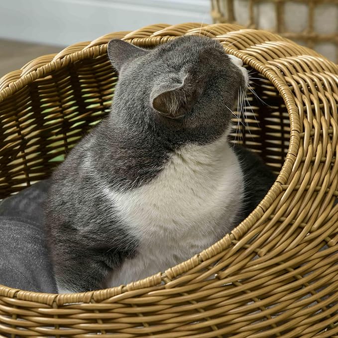 - Wicker Material: Constructed from PE wicker, our water-safe wicker cat bed offers an inviting, relaxing space for your furry friend that holds up to daily use.