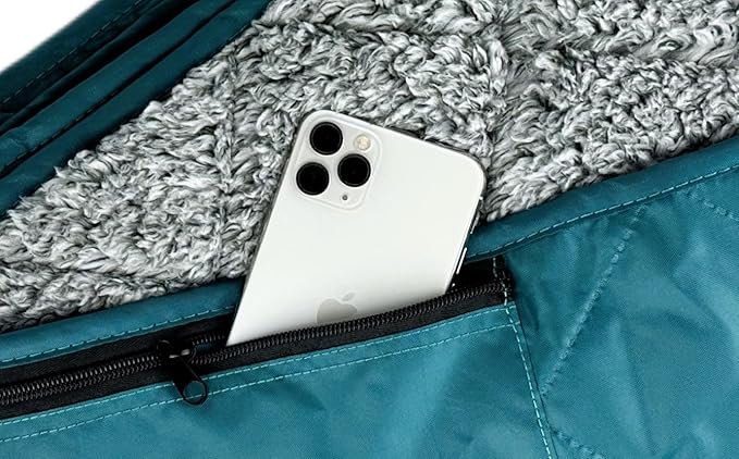 - WHY OUR BLANKET ultrasonically quilted, the 2 layers can’t slide on each other, maximizing safety; at 3 lb of quality materials it is THICKER THAN THE OTHERS in this price range; a special double coating has been sprayed in between the 2 layers to stop water penetrating from the Teal side, making it waterproof in most situations; a secret zip storage pocket for the stuff sack and it is backed by our lifetime warranty; if your unhappy with your blanket, EVER, we will replace it