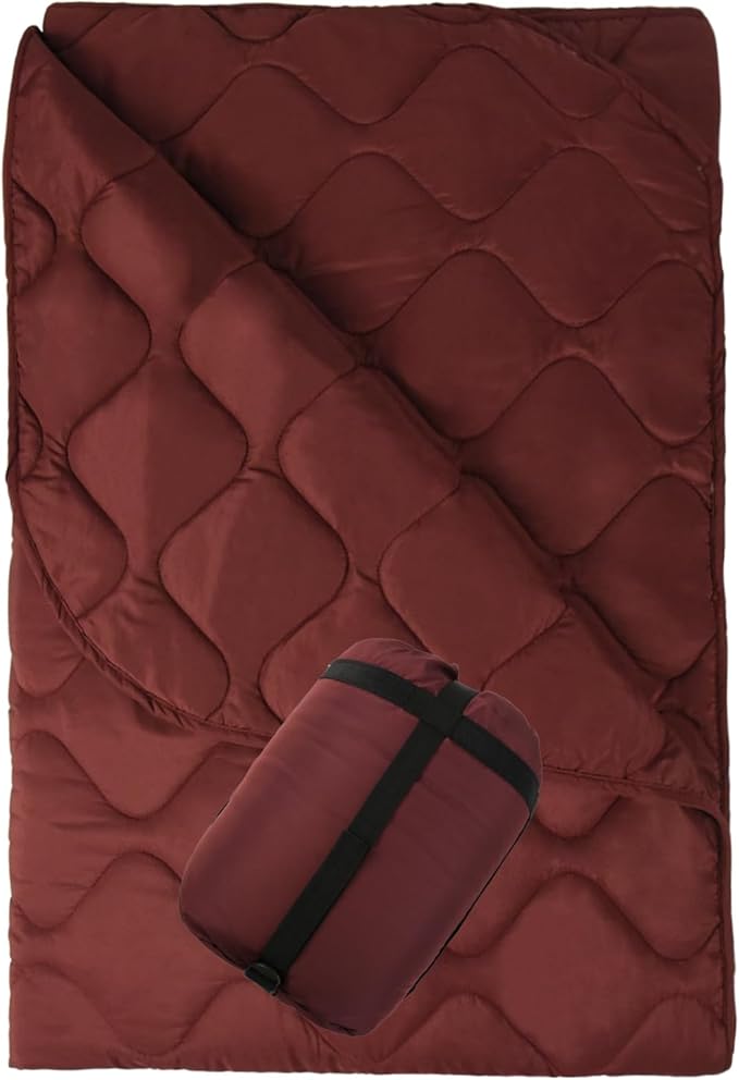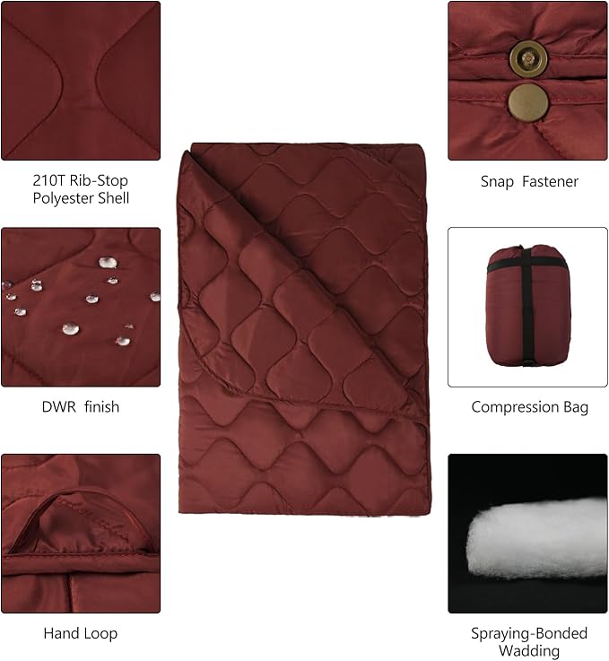 - Outdoor Blanket Materials: 100% polyeter W/R ribstiop fabric with camo pattern and reinforced with wave-pattern quilting. Fill Polyester stuffing padding, warm but it breathes. Lightweight, soft and easy to pack, store, and wash. Easy to set up, put away. Fits right back into it's carry bag with no issues.