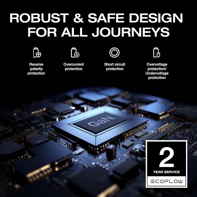 - [Safe Charging & Vehicle Protection] By using GaN technology the DC-DC Charger converts more electricity without any risk of overheating even when charging at high speeds. The charger protects your vehicle against reverse polarity, overcurrent, short circuit, over and under voltage. Includes a 2-year service