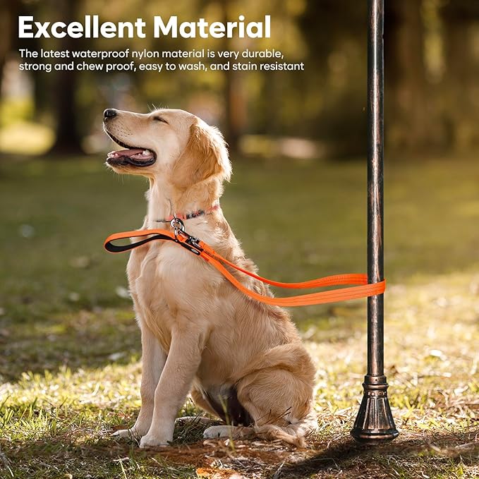 - 【COMFORTABLE, EASY TO HOLD AND SAFE 】360° rotating swivel clasp prevents the leash from twisting and dog getting tangled. Heavy-duty metal clasp makes our training leashes last longer than most ones, and the latest waterproof nylon material(NOT SWIMMING),very durable,strong and chew poof,easy to wash and stain resistant.