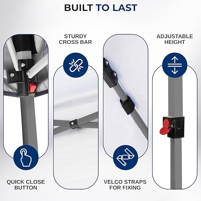 - EASY SETUP AND PORTABILITY - This foldable tent canopy is made for effortless setup and transportation. With its portable design, and sturdy wheels on the carry bag, you can easily take it to any outdoor sports event, festival, or family picnic.