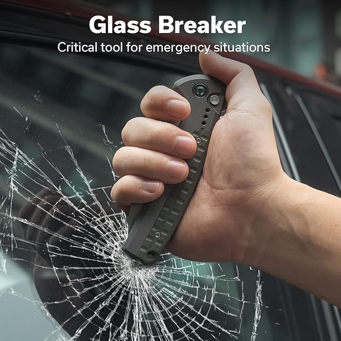 - Emergency Glass Breaker: This pocket knife features an emergency glass breaker, providing a dependable tool for emergency situations