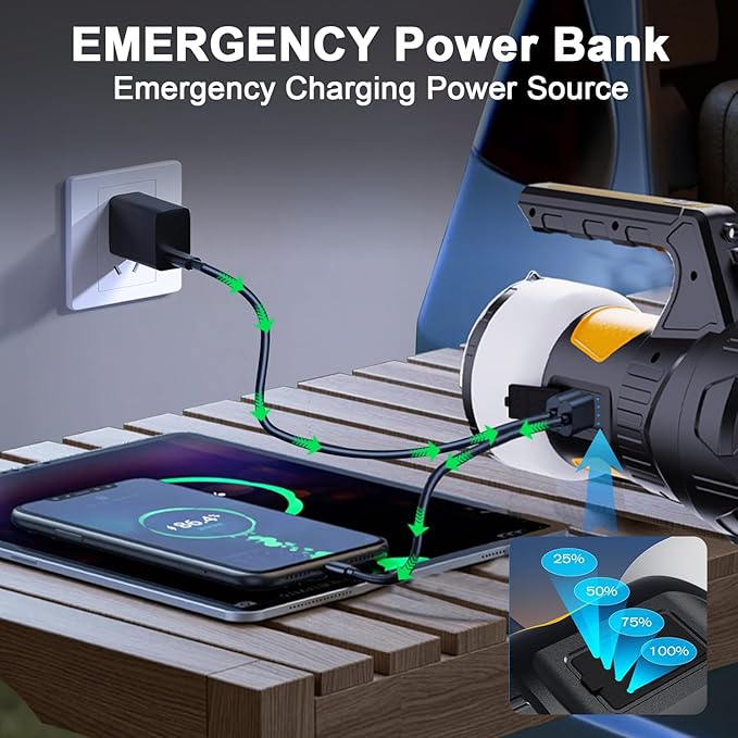 - 【USB Rechargeable with Power Bank Functionality】 Our flashlight lantern incorporates built-in rechargeable batteries, chargeable through the provided USB cable. Its power bank feature allows it to double up as a charger for your mobile phone and laptops