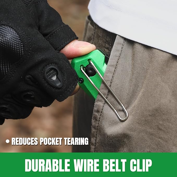 - The lightweight aluminum handle enhances comfort and control. A lanyard hole adds convenience for jobsite use, while the belt clip keeps your pockets free and reduces carrying bulk