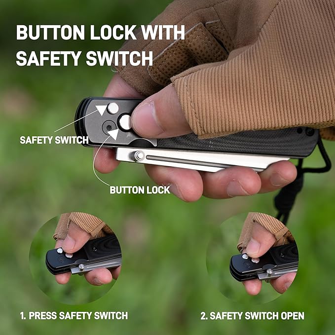 - Handle Material : Black PVD Steel and G10 Inlay Handle