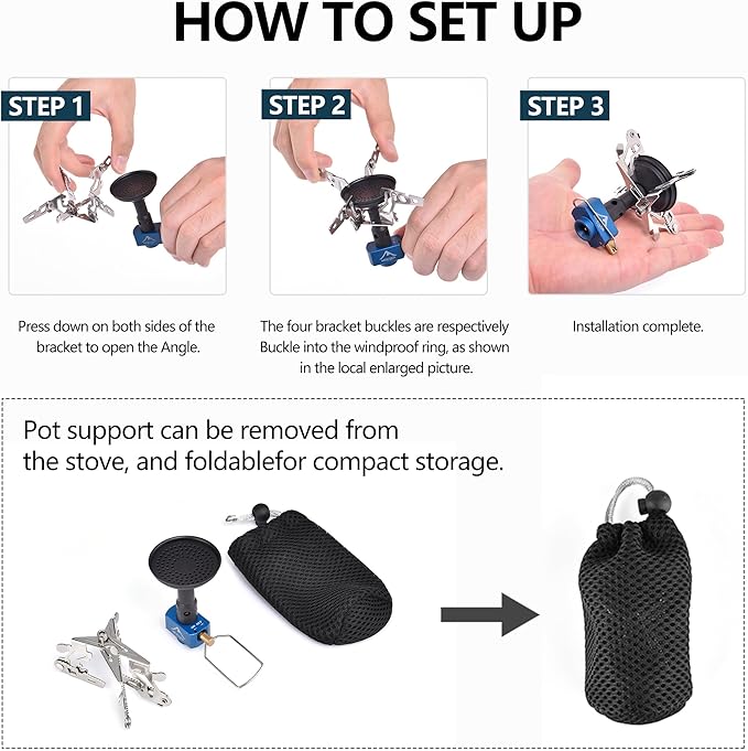 - Powerful Burner: This camping stove boasts a 3300W fire power output for efficient cooking and heating.