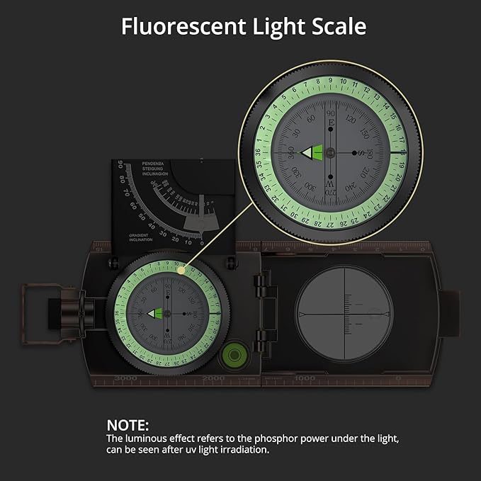 - Military Compass with Inclinometer and Graduated Scale: Anbte professional compass is made of high quality zinc alloy metal body, military construction, waterproof and shockproof. Can be used in extreme weather. Built-in inclinometer and side with scale, can measure the slope and height