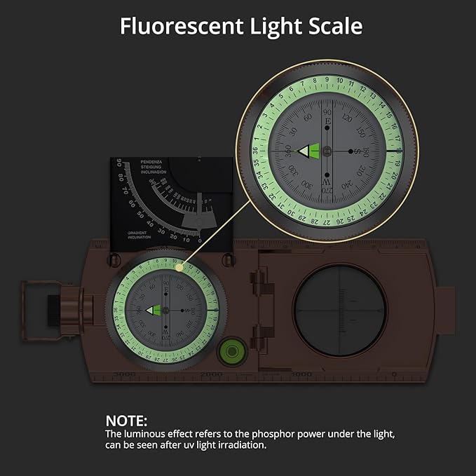 - 【INCLINOMETER COMPASS】This is also a clinometer, enable to measure height and slopes