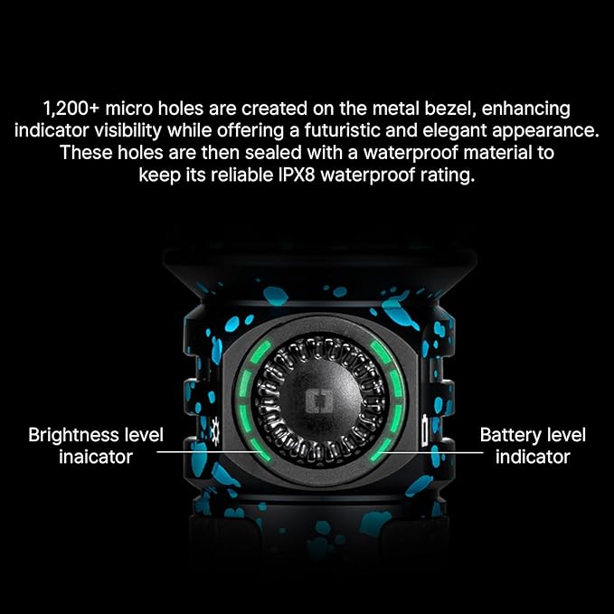 - [Two kinds of Indicators]The new design of the hidden brightness and battery indicators still keeps the high-power flashlight IPX8 waterproof. Never worried in the darkness