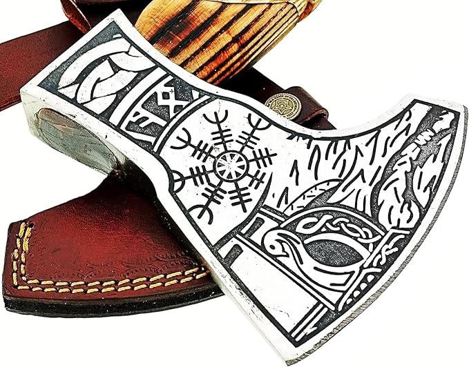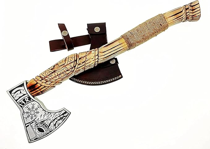 - Sturdy Viking Axe with Perfect Grip Handle, Comes with Leather Scabbard.