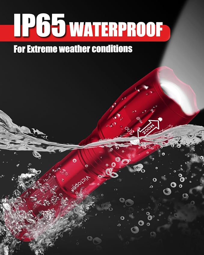 Victoper LED Flashlight 2 Pack Red, Bright High Lumens Tactical Flashlights High Lumens with 5 Modes, Waterproof Zoomable Flash Light for Outdoor, Gifts for Father's Day Camping Essentials Gear
