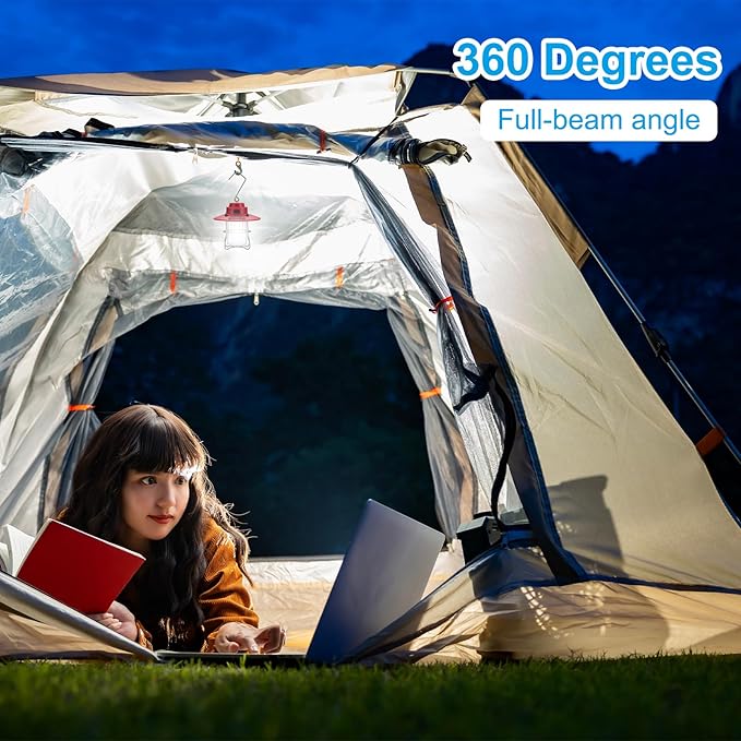 - Advantage: The LED camping lantern has a built-in rechargeable battery and fast charging TYPE-C interface ensuring a long-time output of brightness. Covers 360 degrees full-beam angle to illuminate larger spaces. Has 3 lighting modes, and the on/off button allows you to easily cycle through the lighting modes, which can create different camping atmospheres. And the vintage style design adds unique atmospheres to your camping.