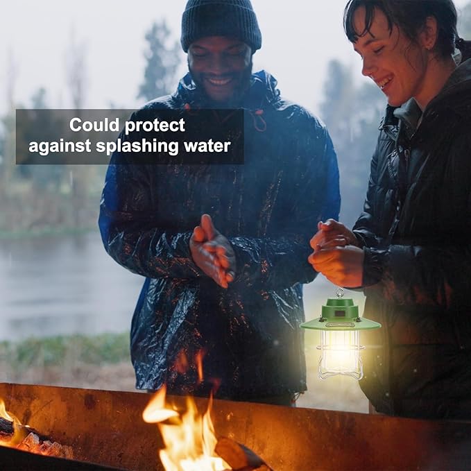 - Application: The rechargeable camping lamp is lightweight and portable with strong and airtight construction, can be protected against splashing water, suitable for camping, hiking, and any outdoor activities on rainy days. With a metal hook, you can hang it on a camping tent, branches, and wall poles, or put it on the table when camping, picnicking, fishing, outdoor dining, power outage, and party decoration.