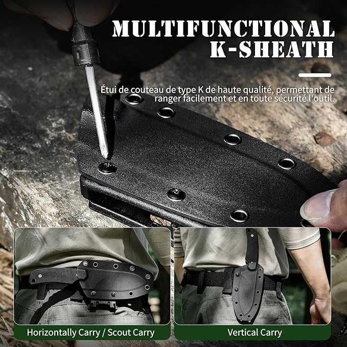 - VERSATILE CARRY OPTIONS: The accompanying k-sheath supports multiple carrying methods, including horizontal/scout and vertical carries, providing flexibility and adaptability for different scenarios and preferences.