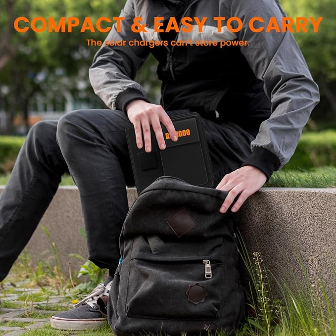 - 【Portable Solar Panels】The REDIGOO small solar panel (also as mini solar panels), a portable solar panel charger, is an excellent choice for extended camping trips or travel to areas with unreliable power. Its compact size (8.28×6.46×0.98 inches when folded) and lightweight design (0.76lbs) make it highly portable—fitting easily into any camping/hiking backpack, perfect for a small solar panel. This lets you conveniently charge devices during outdoor activities or breaks with the solar panel charger.