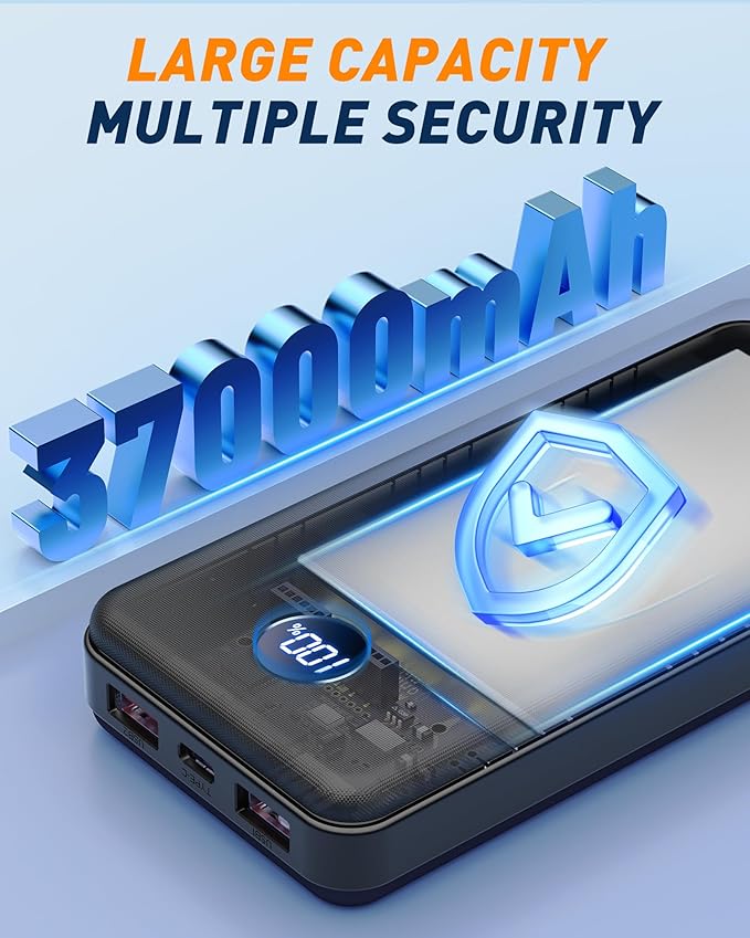 - 【37,000mAh Huge Capacity & Compact Design】BEESHOP use the new high-density polymer battery, it has a larger capacity under the same volume. Our 37000mAh portable charger is 5.99×2.76×0.9in, and weighs 12.28oz, close to the size of the iPhone 16, The super compact and portable design allows you to easily place it in your backpack, handbag, or pocket. Ideal for those who travel or going out need quick and reliable charging.