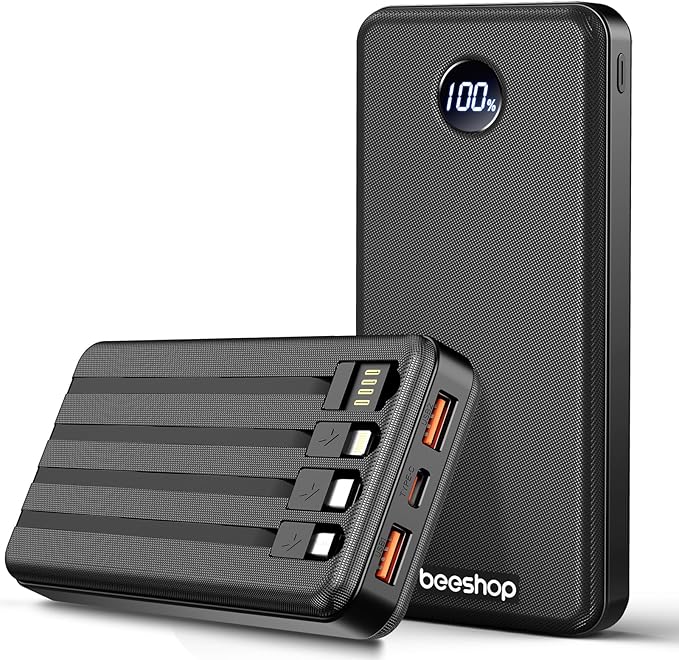 BEESHOP Portable Charger Power Bank - 37000mAh Portable Battery with 4 Built-in Cables, 22.5W Fast Charging Battery Pack Bank Compatible with iPhone 16 15 14 13 Android Samsung Phone etc(1 Pack)