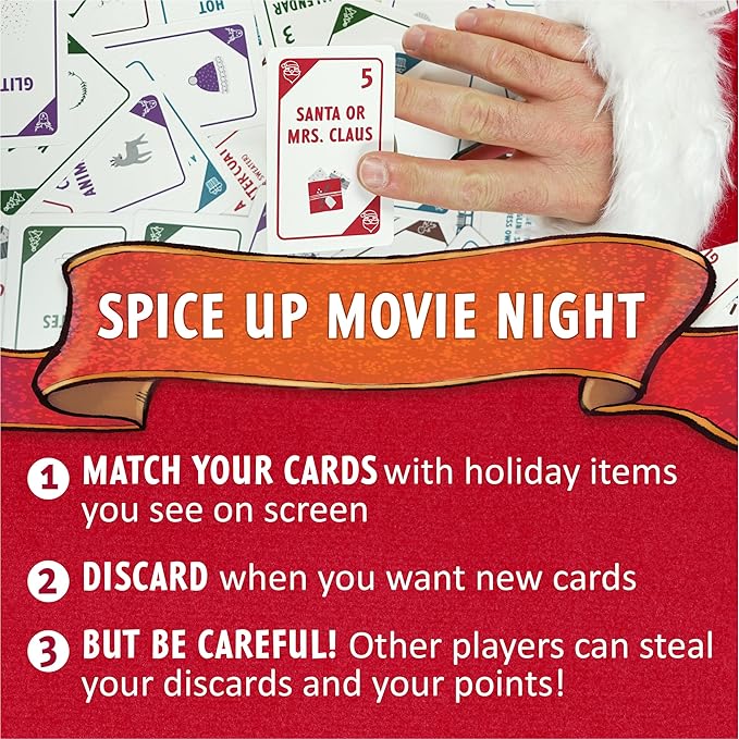 - Play Along with Christmas Movies: Add festive fun to any holiday movie night by matching holiday-themed cards to moments on screen—perfect for families, kids, and adults.