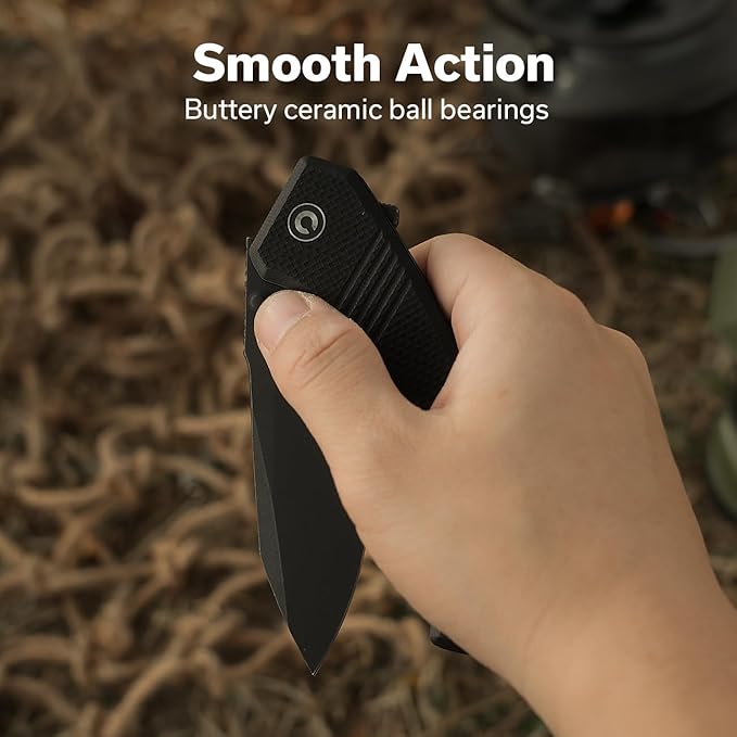 - Smooth Action: Flipper and thumb stud offering several ways to deploy the blade effortlessly with the buttery ceramic ball bearings