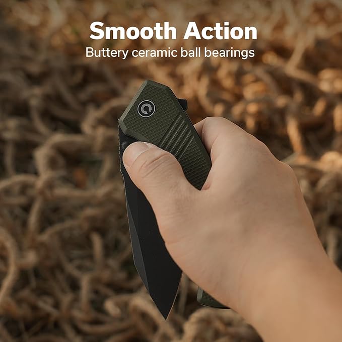 - Smooth Action: Flipper and thumb stud offering several ways to deploy the blade effortlessly with the buttery ceramic ball bearings