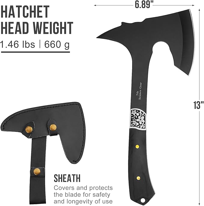 - Ergonomic Wood Handle: Designed with a black wood handle, this camping hatchet provides a comfortable, balanced grip. The ergonomic design ensures enhanced control, making it ideal for camping, backpacking, and bushcraft activities