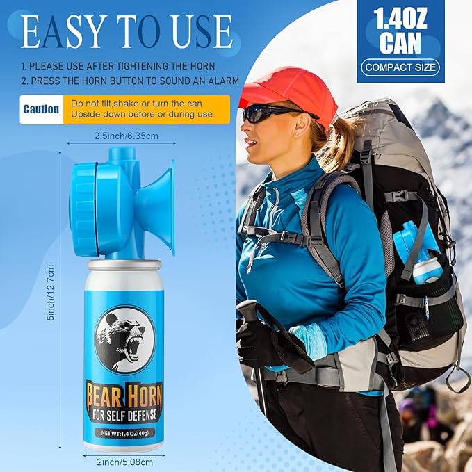 - Powerful 123dB Alarm: This self-defense 1.4oz bear horn produces an ear-piercing 123dB blast audible up to 1/2 mile away, effectively deterring wild animals and potential threats.