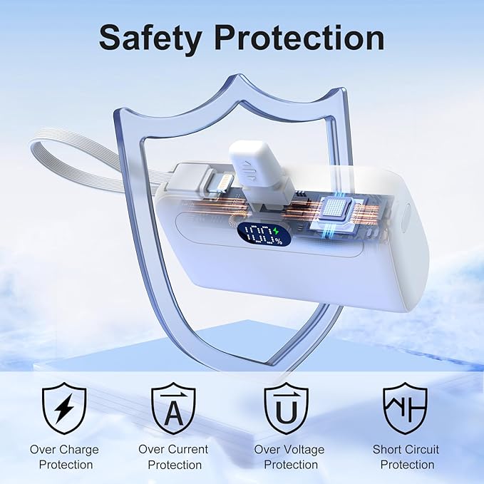 - [Portable Charger with Built-in Connector & Cable]- This compact power bank features a built-in Lightning connector for Apple devices and a built-in USB-C cable for Android phones, making it compatible with iPhone 16/15/14/13/12/11 series, X/XR/XS/8/7, AirPods, as well as popular Android devices like Samsung Galaxy, Google Pixel, and more. Enjoy true cable-free convenience anywhere.